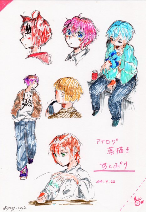 0 5 色々疲れたので現実逃避お絵描き 1枚目は一応一発描きなのだな どう足掻いてもアナログ あとプリンター最強 #すとぷりギャラリー 20/04/22 16:23