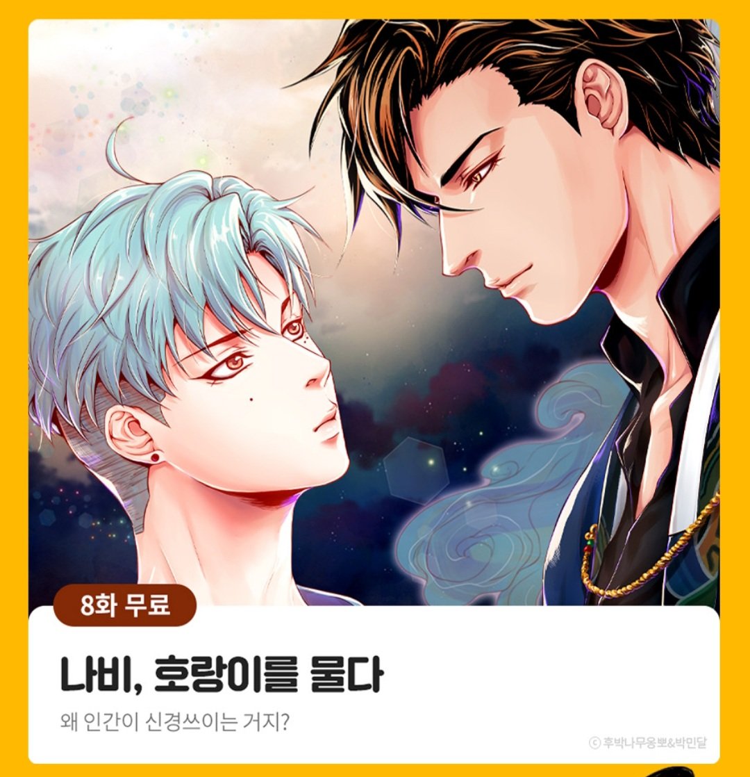 🦊[나비랑 호랑이 너희 말고] 21화 업데이트🐶 나루와 경훈이 이야기를 담은 시즌1을 마무리하고 새로운 등장인물들로 찾아뵐게요! 감사합니다🙏 🔽연재처🌟 twitter.com/park_mindal89/… - 각 플랫폼 매주 월요일 연재 #나비랑_호랑이_너희_말고 #BL #구미호수 #다정공