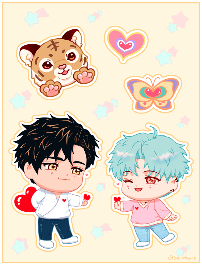 2022년 호랑의 해 한울💗연호 그림이 늦었습니다😭😭 새해 복 많이 받으시고 건강과 행복이 가득하길 바랍니다!!❤️🔥❤️🔥❤️🔥 새해에 나비, 호랑이를 물다를 읽어보시는 것도 좋지요🎊twitter.com/park_mindal89/…