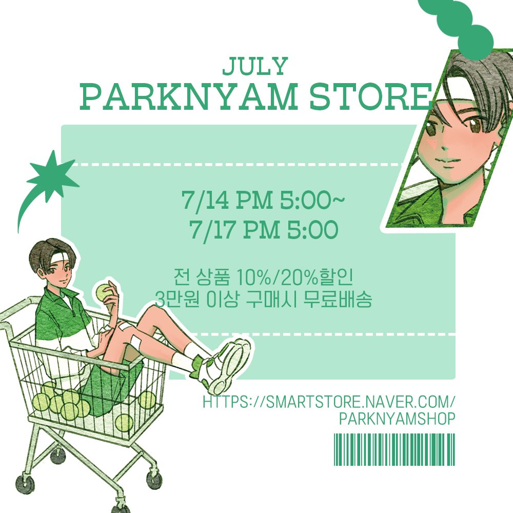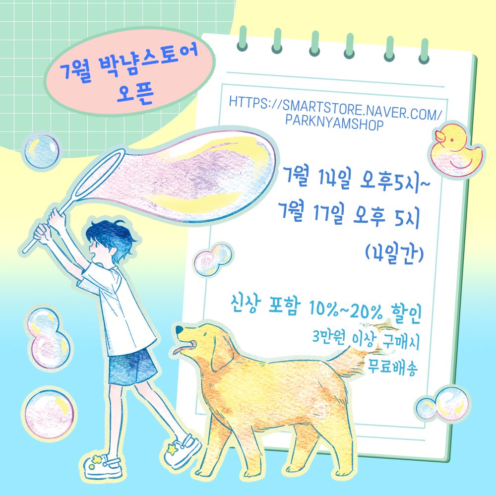 🌟 박냠스토어 4일간 오픈합니다. 기간 7월 13일(목)~7월16일(일) 오랜만의 통판인 만큼 덤을 조금 더 준비해봤어요. 내일저녁 8시에 만나요! m.smartstore.naver.com/parknyamshop