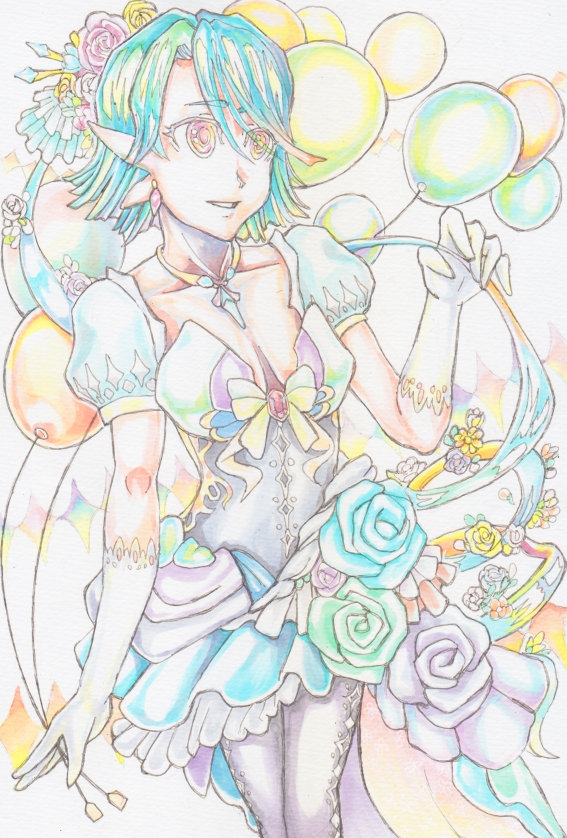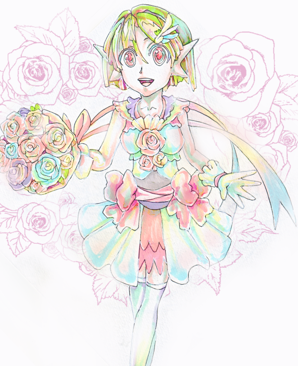 アナログたのしー😊 ドレスとお花さいこー🌸🌸🌸 #今月描いた絵を晒そう