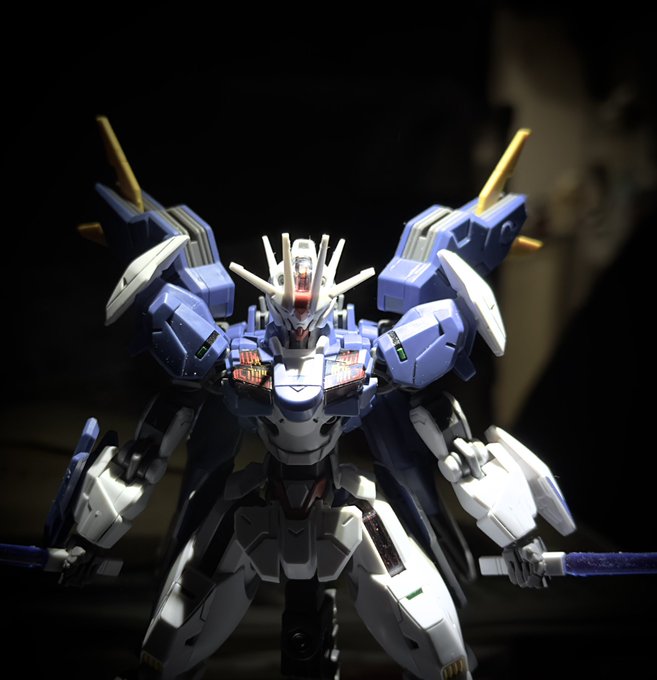 色んなストレスの発散に #ガンダムエアリアル改修型 発売日に近くのヤマダ電機に開店と同時にゲットしました。 照明の当て方でカッコよく決まります。 #水星の魔女 #ガンプラの画像を貼るとRTされると聞いて #ガンプラ