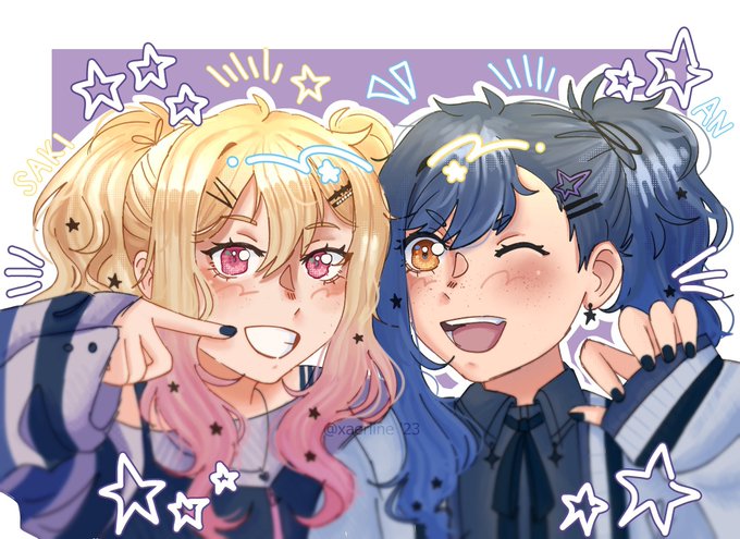 (Day 2) An + Saki = Starry-haired pals !! #prsk_FA (-🎧)