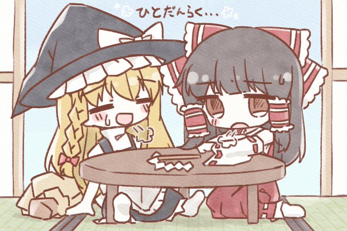 異変が片付いてひとだんらく……な、霊夢と魔理沙を描きましたっ✨ #東方 #東方Project #博麗霊夢 #霧雨魔理沙