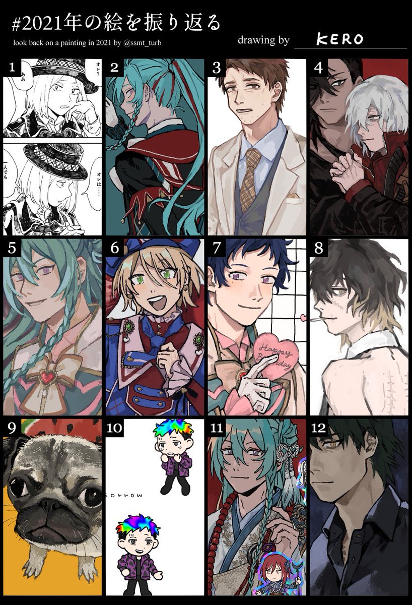 テンプレお借りしました〜似た構図いっぱいあって頭抱えた 来年はいろいろなポーズを…… #2021年の絵を振り返る