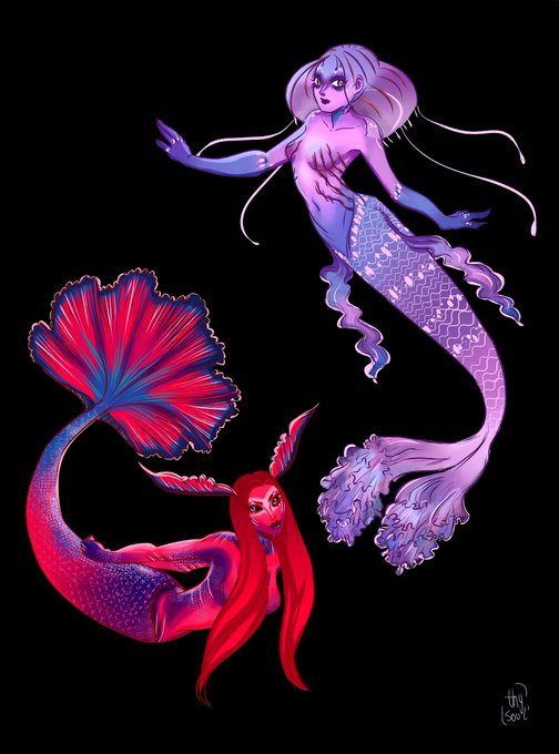 This was my creation for the #mermay2020 but I never shared it. one mermaid is inspired by jellyfish and the other by a betta fish❤💜 Tthysoul ~ . . #mermay #mermay2020 #mermayovertime #Mermaid #mermaids #FelizMartes #arte #art #atista #artoftheday #originalcharacter #original