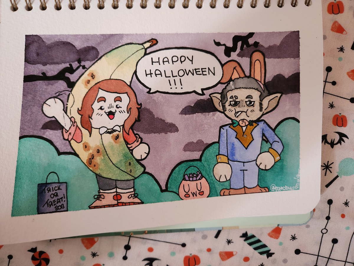 Bringing back an old oc and a new oc for Day 2: Vampire 👏🏾 Here's Vavie and Vince! Two vamps dressing up for Halloween 🎃 @erinmcdowellart #monstertober2022 #blacktober #originalcharacter #Vampire #watercolor