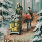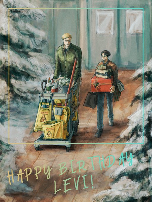 これはお仕事中にみんなにお祝いされた清掃員さんが、歴史の先生の部屋に突然増えた荷物を置かせてもらいに向かっている様子です🎉🎂🎁🎄 #エルリのリヴァイ生誕祭 #エルリのリヴァイ生誕祭2021