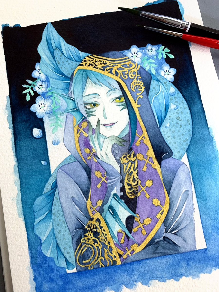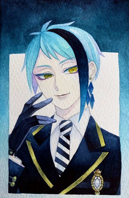 素敵な企画にジェイドで参加させていただきました〜!☺️ とにかく寒色が好きなので青、紫系を中心に塗ってます。全然絞れなかった推し色達はリプに繋げます。 使用水彩紙はウォーターフォードホワイト中目。 #ゆるっとアナログ企画 #推し色透明水彩でtwstファンアート #twstファンアート