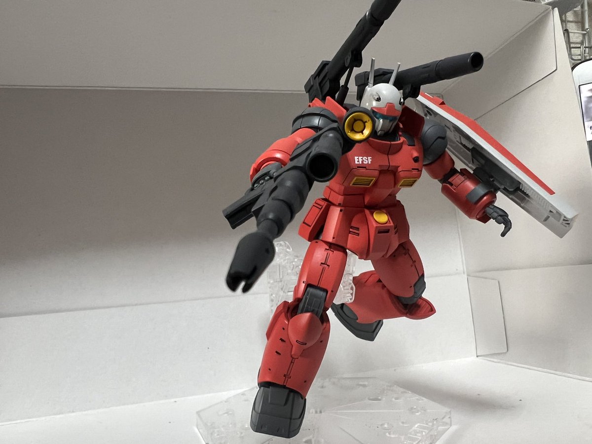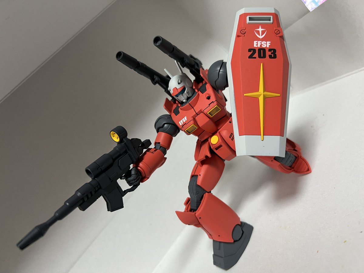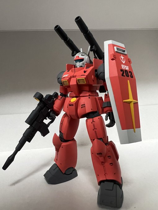 ガンキャノン(THE ORIGIN版) ドアン版にフルアーマーガンダムで余ったシールドを持たせて!! 今回はガンダムの赤で塗って見ました〜 #ガンプラ #ガンプラの画像を貼るとRTされると聞いて #ガンプラ好きと繋がりたい