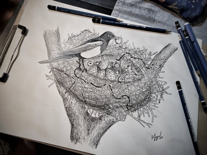 Day 23 of #ArtAdventCalendar. Some birds are hard to draw, especially when they're only one colour. #artist #ArtistOnTwitter