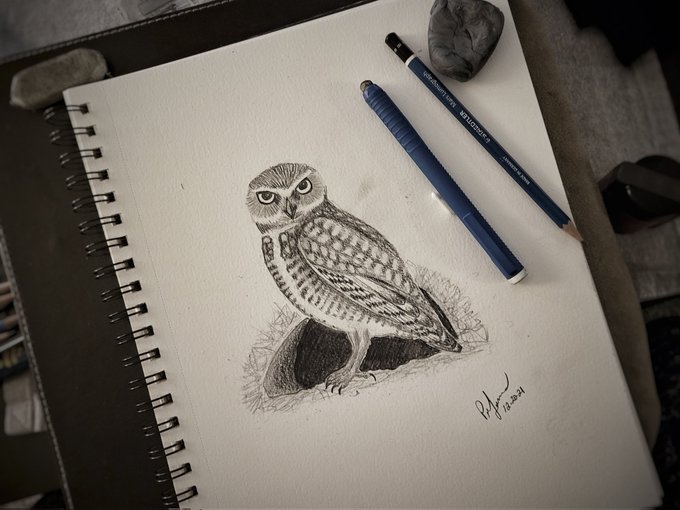 A drawing I did last night for Day 4 of #ArtAdventCalendar, a Great Grey Owl. #Artist #artistsontwitter