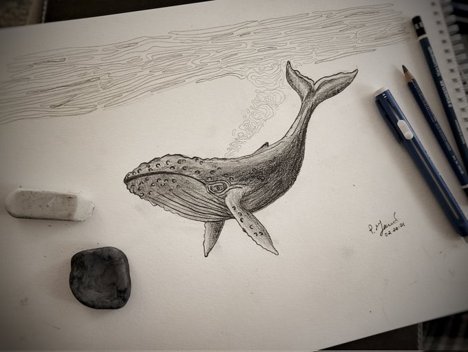 Day 20 of #ArtAdventCalendar "Do You Speak Whale?". Graphite on Canvaspaper 12-2022 🐋 🐳 🐋 #artist #artistsontwitter