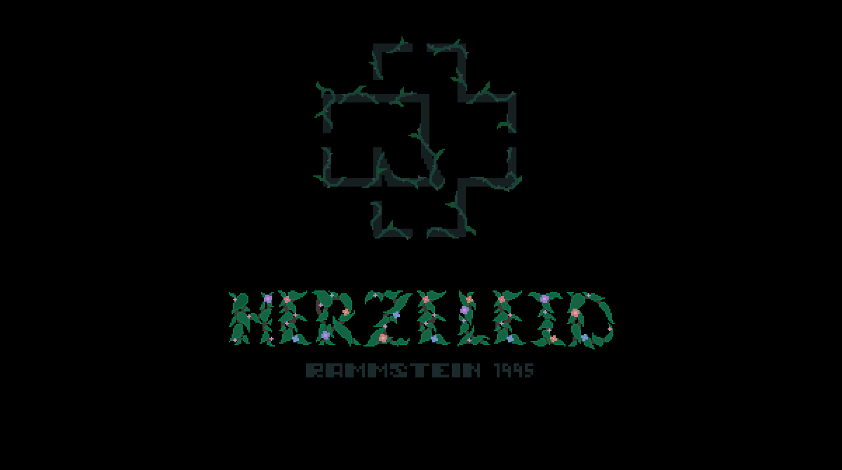 Nature themed lettering study as a mockup cover for Rammstein's Herzeleid album. ~3h slow work. #pixelart #lettering #ドット絵