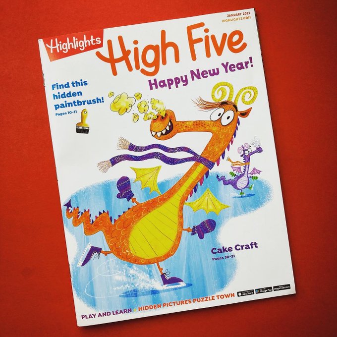 Happy New Year 2020, y’all! My ice skating dragons are on the Jan ‘22 cover of High Five magazine!It was so fun & a pleasure to #illustrate ! #highfivemagazine #kidlitart #kidlitartist #kidlitillustration #childrensbookillustration #childrensillustration #dragonillustration