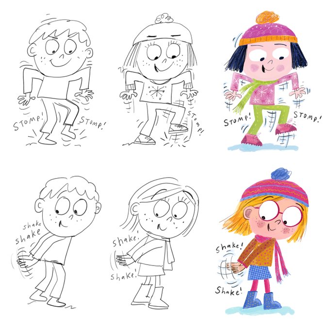 Last one of the kids. The boys got thinner; probably from all that flapping and silliness 😂 #characterdesign #characterevolution #illustrate #kidlitart #kidlitartist #kidlitillustration #childrensillustrator #childrensbookillustration #highfivemagazine #kidlitillustrator