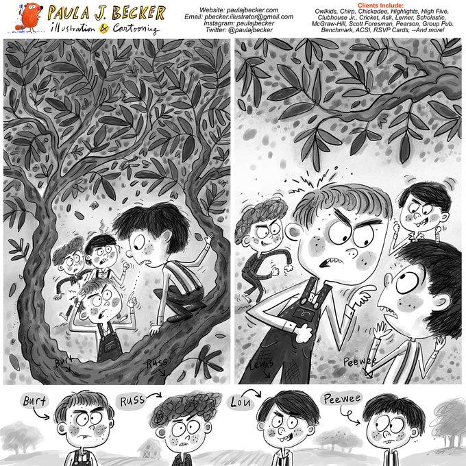 #KidLitArtPostcard Hey all y'all! I'm Paula, an #illustrator #kidlitillustrator #cartoonist I thought I'd share some #grayscale #illustration this time. You can see more of my work at: paulajbecker.com instagram.com/paulajbecker
