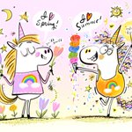 Happy birthday #KidLitArtPostcard ! I'm Paula & #illustrate funny/silly #kidlitart but here's something more serious...Nah! JK! We need more cute & happy #unicorns right? #kidlitillustrator #kidlitartist #childrensbookillustrator paulajbecker.com instagram.com/paulajbecker/