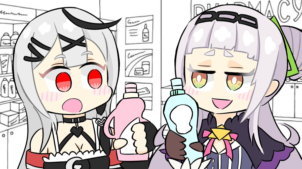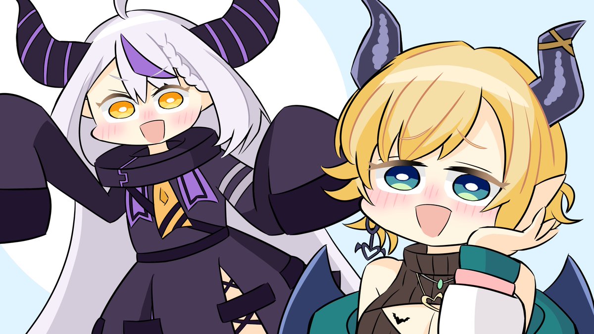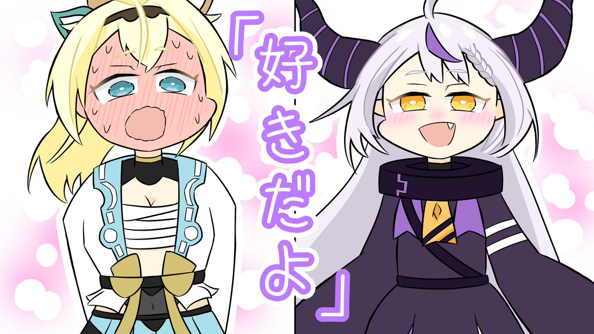 ラプちゃんとルイ姉が普段見せない姿を ちょこ先生には見せるところがカワイイ!ってなったので描いてみました。 よかったらぜひ本編もみてください!🥀🛸💋 #laplus_artdesu #Luillust #しょこらーと