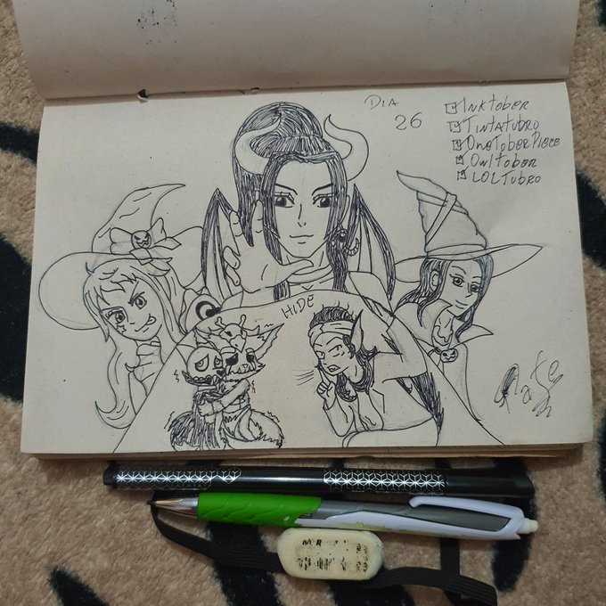 Dia 26 Me escondendo com King e Gnar das três bruxas: Nami, Boa Hancock e Robin. Parte de mim quer ser pega. #inktober #inktober2020 #inktoberday26 #tintatubro #witch #OneToberPiece #owltober #LOLtubro #LOLtober