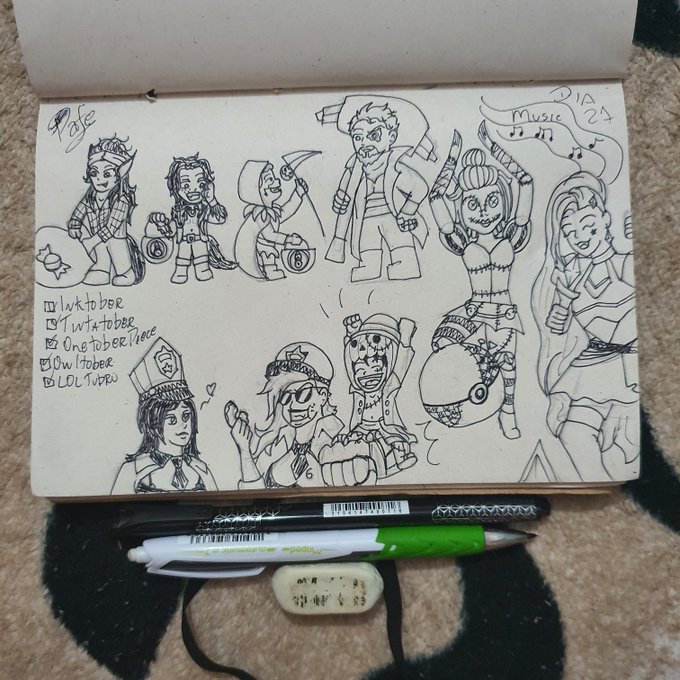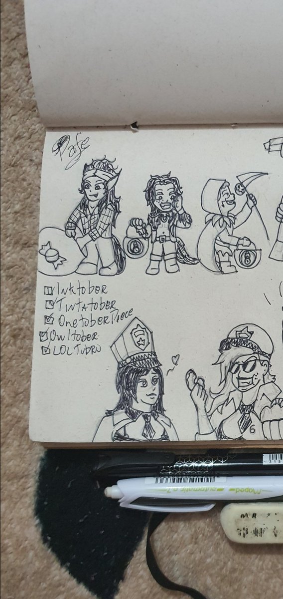 "D27. Ace, Sabo e Luffy pedindo doces. Jayce, Orianna, Seraphine, Vi e Caitlyn também. E eu estou entregando. Quanta gente. Uh." #inktober #inktober2020 #inktober2020day27 #tintatubro #OneToberPiece #Owltober #LOLtubro #LOLtober