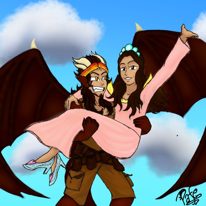 Hoje é o Dragão que fica com q Princesa 🤙😎🤙 Arte de aniversário de uma amiga minha com os oc's que criei de nosso grupo de amigos 💜 #digitalart #medibang #MediBangPaint #Sketch #dragon #princess