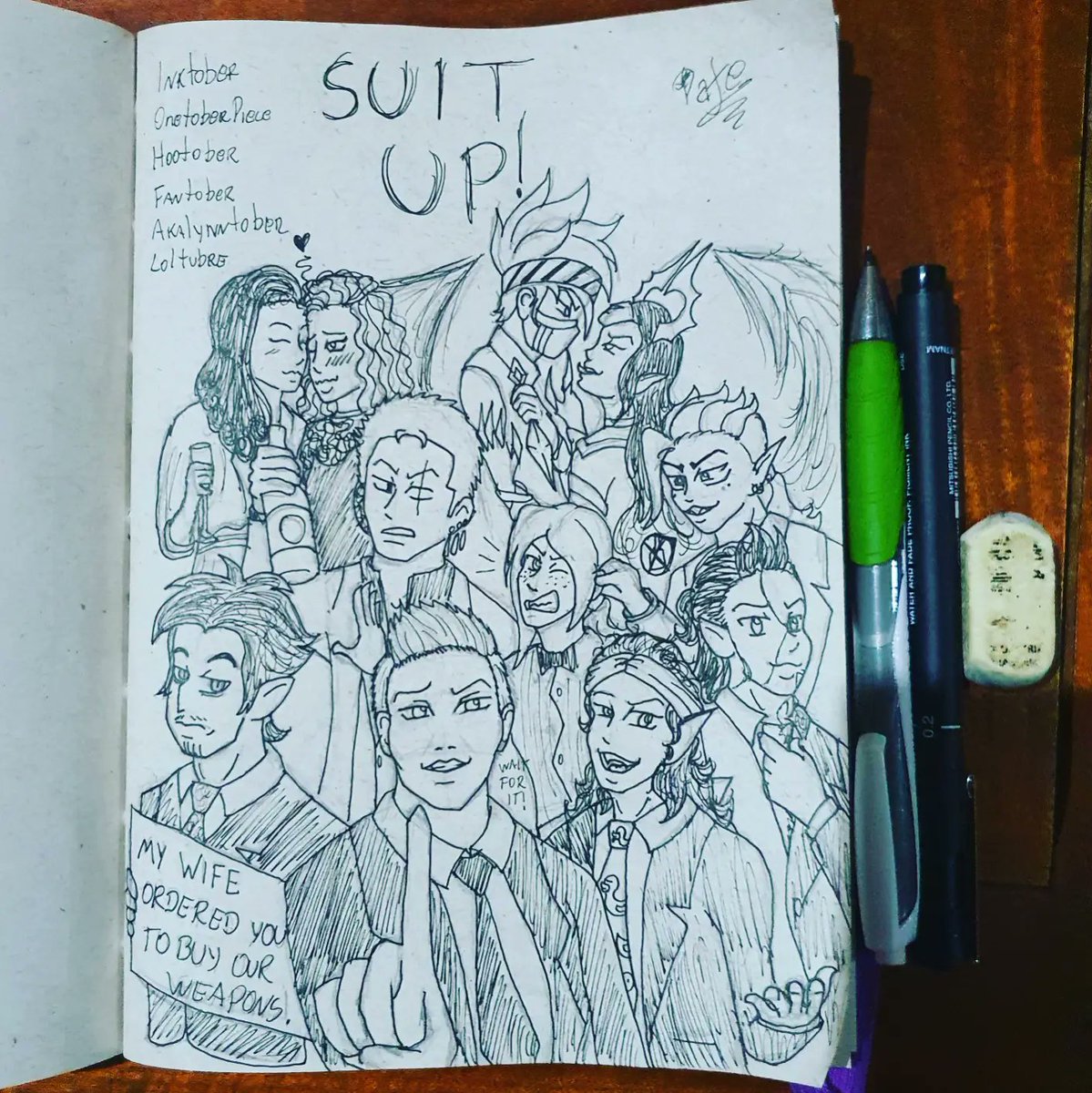 D2 SUIT UP Barney Stinson nos ensinando a nos vestirmos melhor! Alador fazendo propaganda! Young Fortune tentando tomar o sake do Zoro Diana com sua namorada Barbara 💜 E Evelynn sombria tentando... O que quer que seja com a Akali Presas de Prata #Inktober #inktober2021