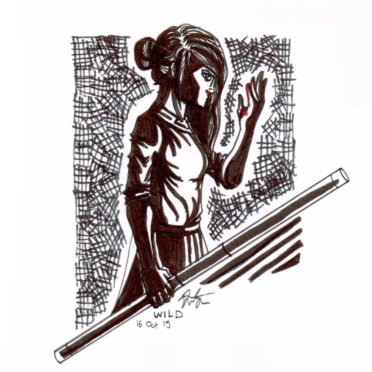 (2019) Day 16: Wild Oops, prev day was supposed to be 15: Legend. Drawing pen + brush pen #inktober #drawtober #ArtistOnTwitter #illustration #oc