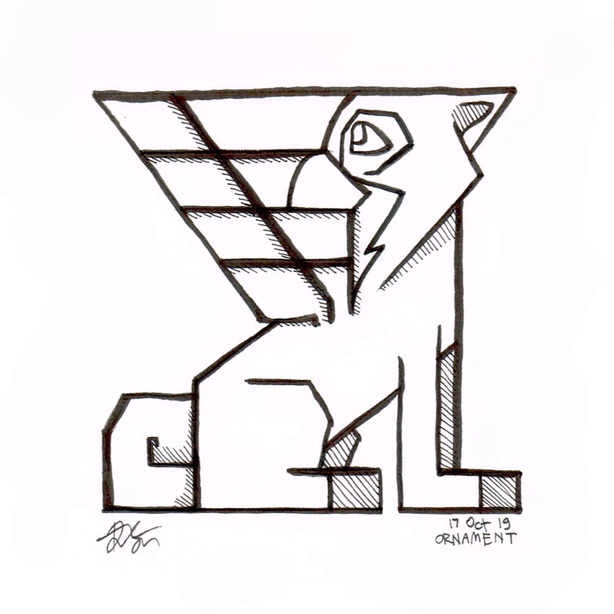 (2019) Day 17: Ornament An wooden owl-shiba griffon keychain thing Hydie has (she's in one of the previous inktobers)! Drawing pen + brush pen, cleaned up w/ Medibang #inktober #drawtober #ArtistOnTwitter #illustration #oc