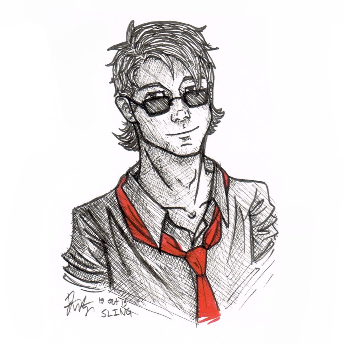 (2019) Day 19: Sling Ew, old art. But it'll be over soon. Tombow brush pen + drawing pen, cleaned up w/ Medibang #inktober #drawtober #ArtistOnTwitter #illustration #oc