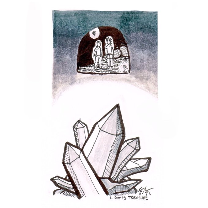 (2019) Lastly, Day 21: Treasure Hard to believe I've written past this stage already. I should try finish the first draft by this year. Drawing pens + brush pens #inktober #drawtober #ArtistOnTwitter #illustration #oc