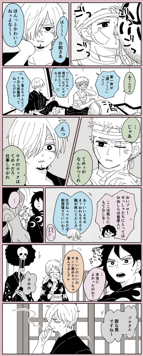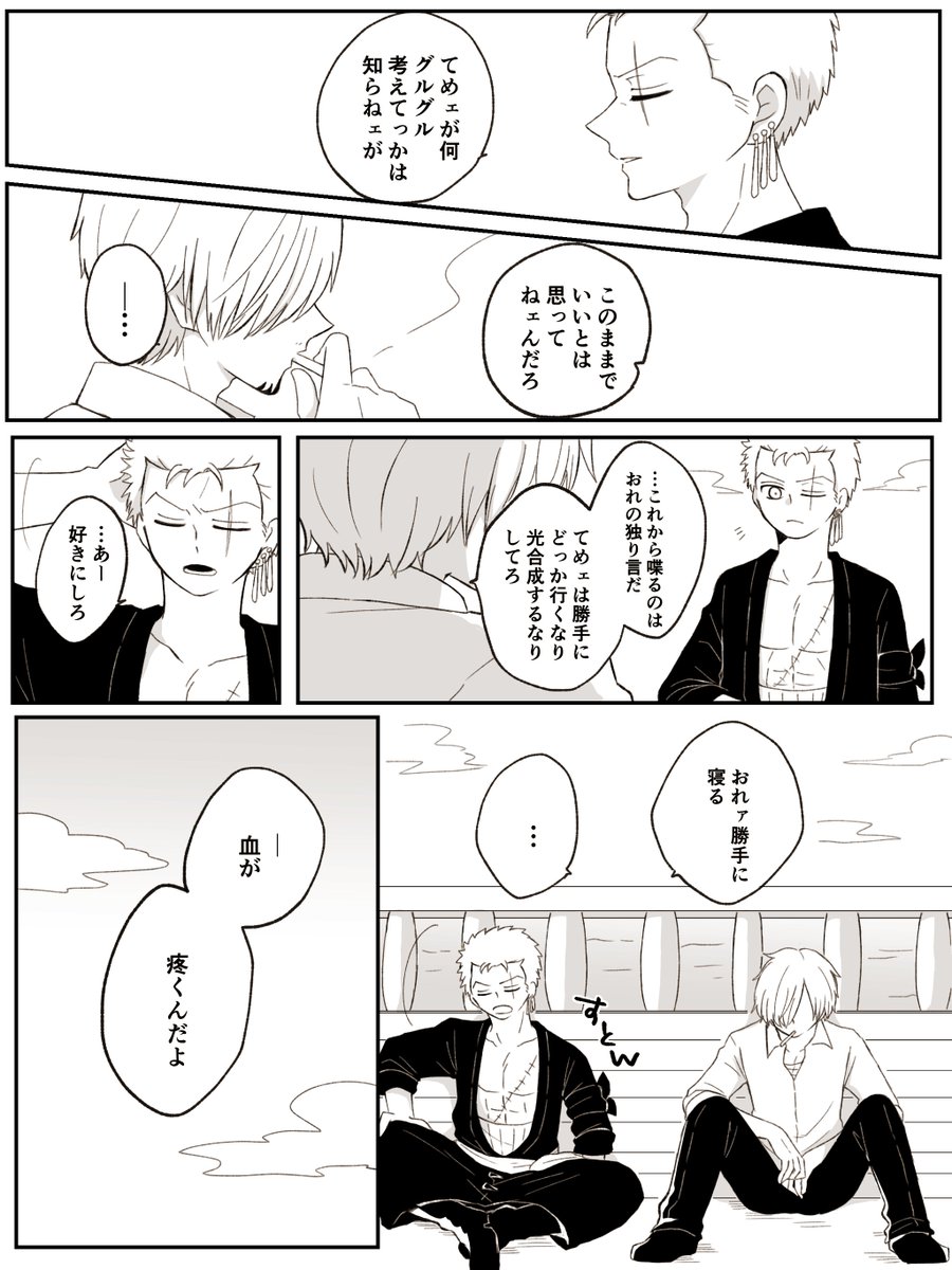 #ゾロサン真ん中バースデー #ゾロサン真ん中バースデー2022 ⚠うっすら本誌 改めまして真ん中バースデーおめでとうございます!!!🎉 ひよ子さん( @hiyoko_ZS1132 )が私の絵から素敵小説を書いてくださいました…!!!お願いしてリメイクさせてもらっております笑