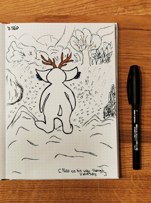 Inktober. Day 7. Trip. [aka Ned on his trip through Vøldsøy] #inktober2022 #day7trip #Inktober2022trip #cliqueart