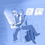 #いずまこ版深夜のお絵描き文字書き一本勝負 「水族館」「勘違い」お題お借りしました~!いずまこらしいお題💙💚 1+1.5h 真くんは眼鏡がトレードマークすぎるからお忍びは逆に素顔なのかなあと思ったけど、顔面強すぎて目を引くから普段と印象違う眼鏡かけるのかも……