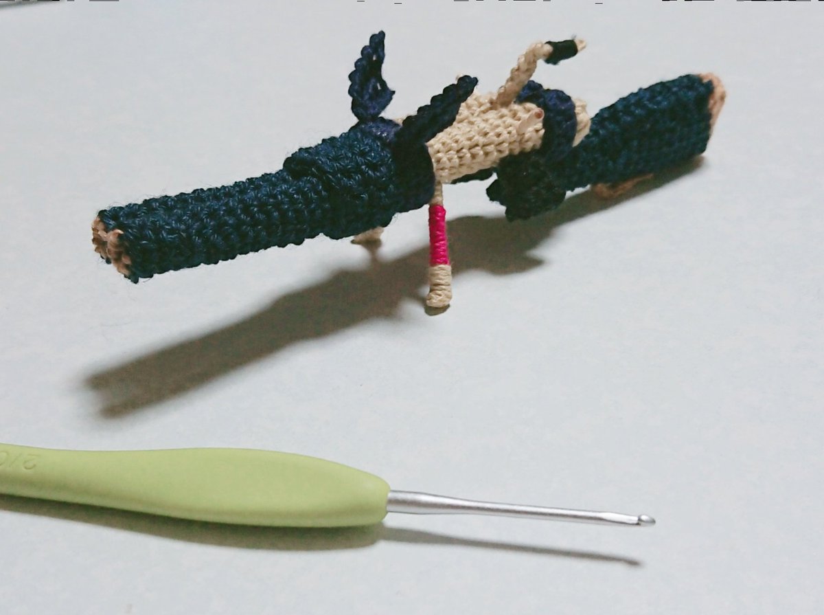 43 319 ライトボウガン 『夜行弩【梟ノ眼】』 あみぐるみ編みました サイレンサーver、ロングバレルver 付け替え可能 #モンハン #あみぐるみ 22/06/05 14:14