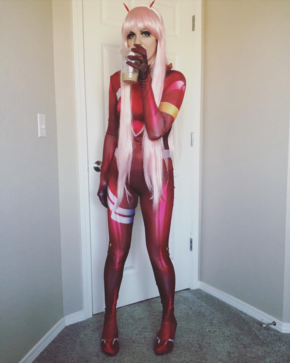 1 10 Zero Two would definitely like starbucks #zerotwo #cosplay s/o @miccostumes 21/03/12 08:22