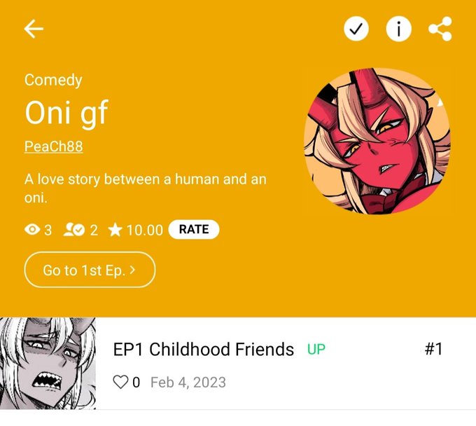 711 11.1K Oni gf is up on webtoons! 23/02/05 00:27