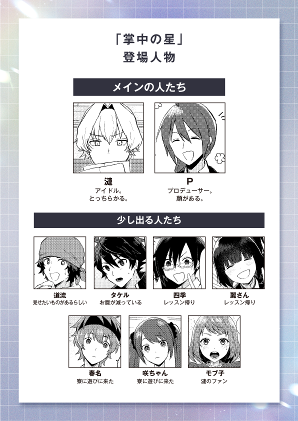 5/3 新刊サンプル 「掌中の星」A5/44P/¥500 周囲の人々からの好意がよく分からない漣がとっ散らかるお話。 ↓長めのサンプル pixiv.net/artworks/10760…