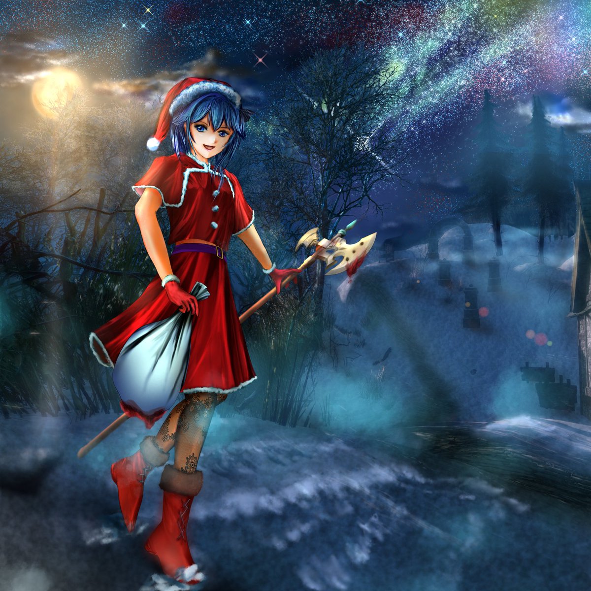 #ほしまちぎゃらりー サンタすいちゃんがやってきた。もうちょっと空を描きたいが間に合わんかた