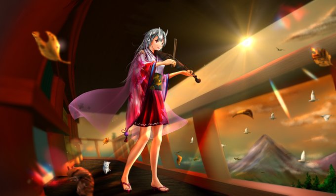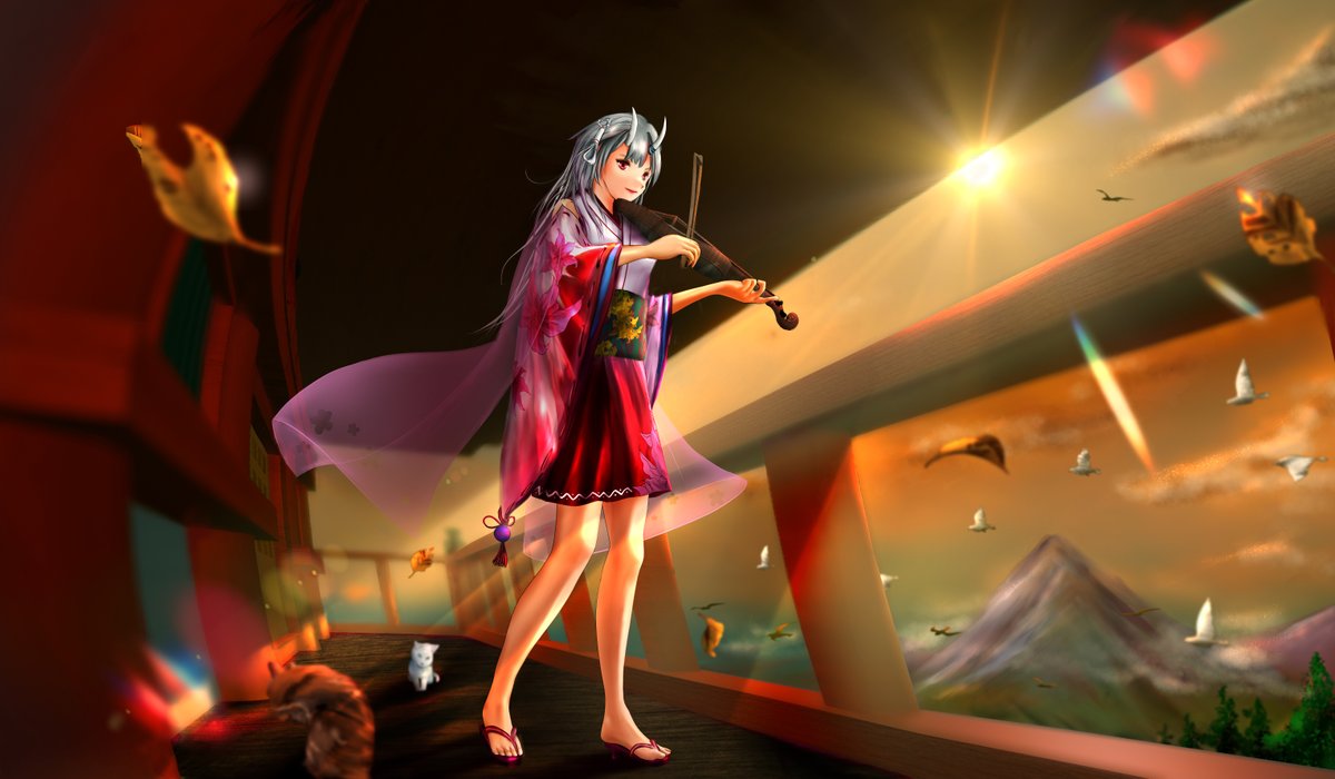 0 4 #百鬼絵巻 あやめ殿のつもり。早くも秋模様。 最初弓持ってたんだが鳥を狙ってるように見えて変更 23/05/04 16:18