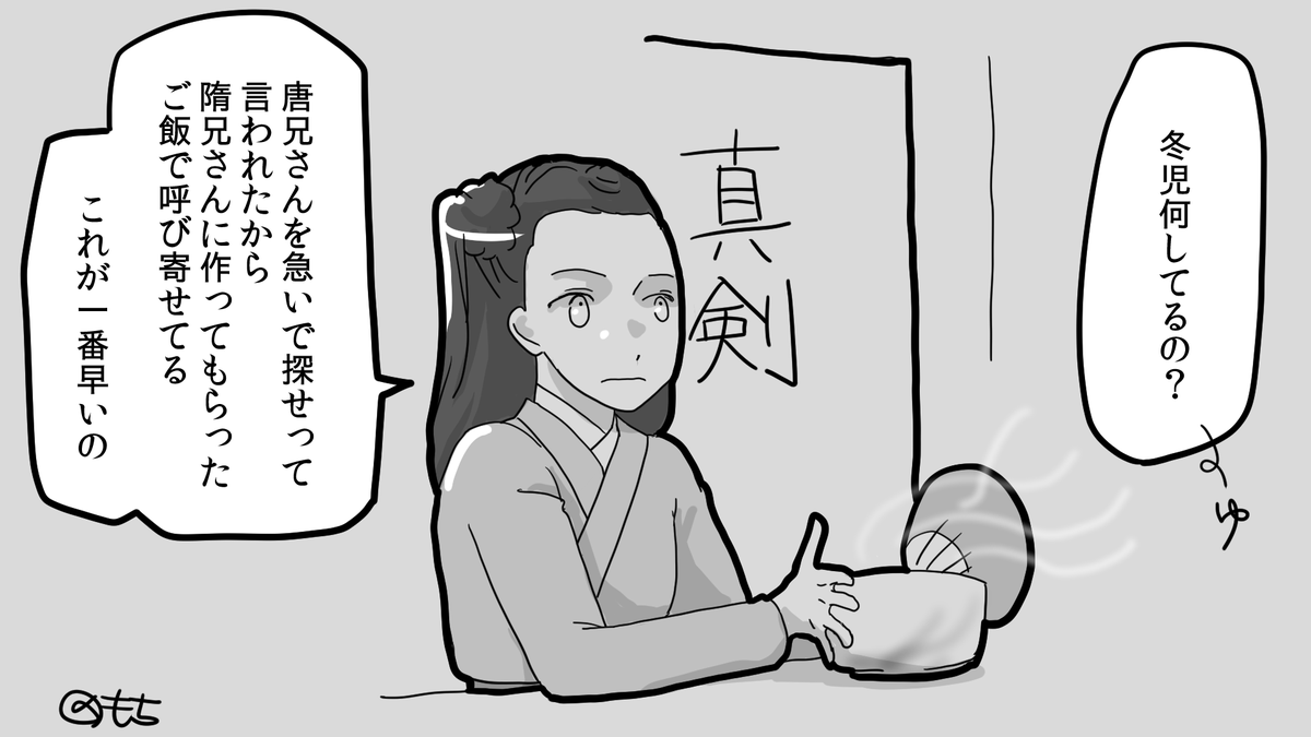 0 13 普段は隋州を振り回しているけれども、胃袋はがっちりつかまれてしまっている唐泛と、しっかり者の妹、冬児。 #成化十四年落書き 23/07/16 18:44