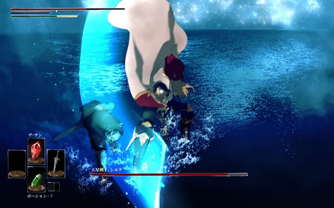165 395 フロム版シエテHLがやりた過ぎて描いた落書き 1ゲージ目削るとムービー挿入後に星海マント形態になって2ゲージ目に突入みたいな感じで 23/06/20 20:16