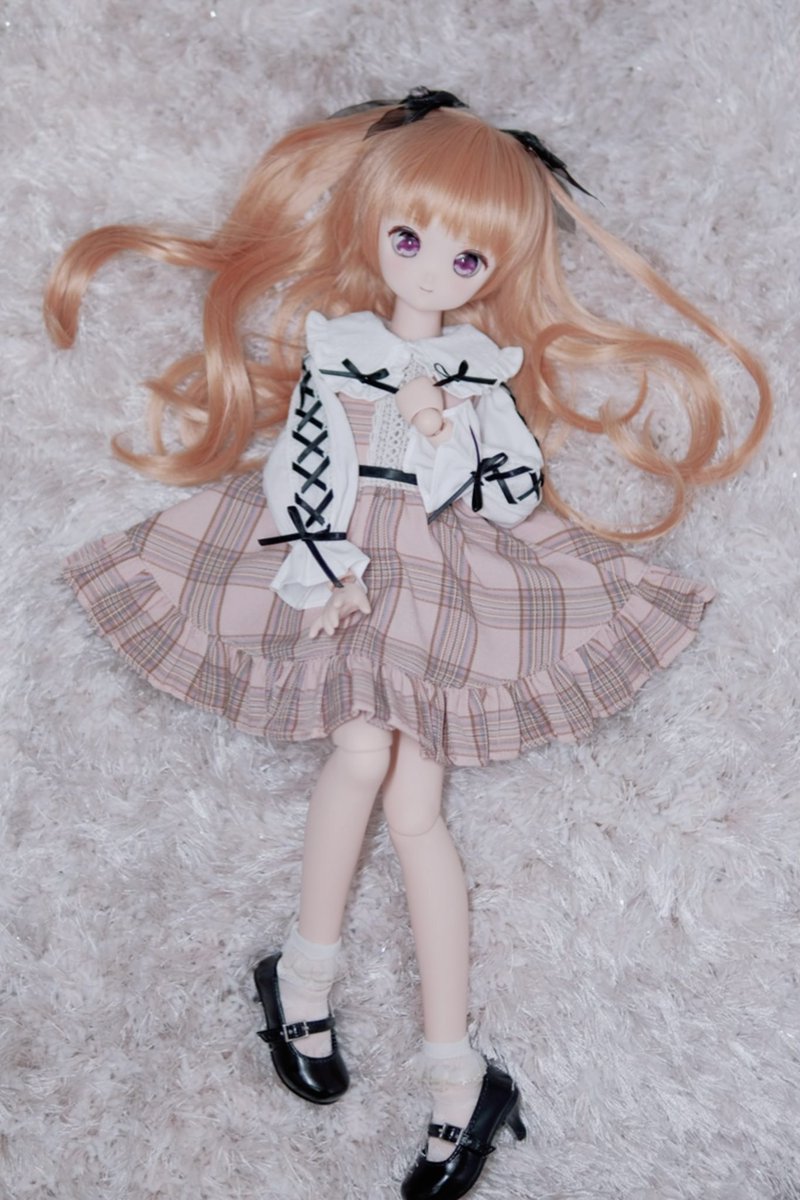 乙女ジャンスカセットのピンクを早速着せてもらいました〜地雷感あってかわいすぎる🥺💕 #MDDはいいぞ #うちのこかわいい #ドールオーナーさんと繋がりたい