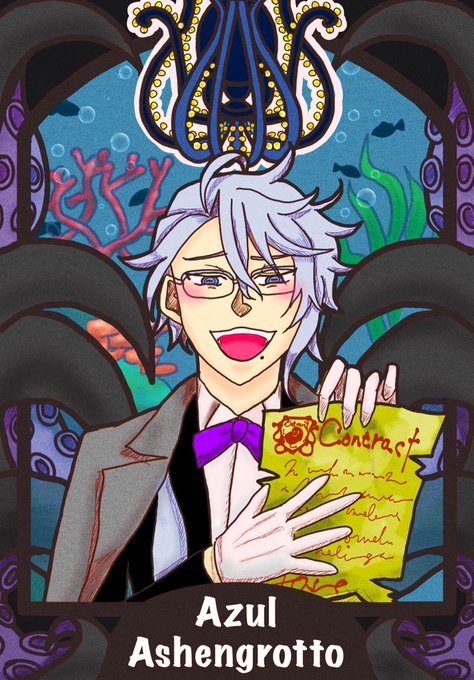 #第2回twstミュシャ企画 橙ちゃんの素敵な企画に参加させて頂きました!珍しくアズールです🐙ミュシャらしくなってるか不安… ↑タグから素敵なイラストが見れますので是非見てみて下さい⭐ #ツイステファンアート #twstファンアート 画質が悪かったので上げ直しました。