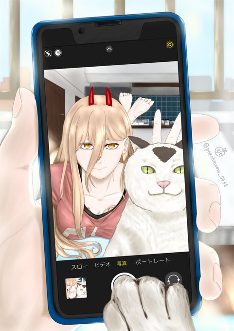 ニャーコ目線の自撮り🐈Selfie in Meowy’s perspective #drawing #painting #chainsawman #power #meowy #fanart #CLIPSTUDIOPAINT #digitalart #art #イラスト #チェンソーマン #絵描きさんと繋がりたい #パワー #絵 #アート #創作