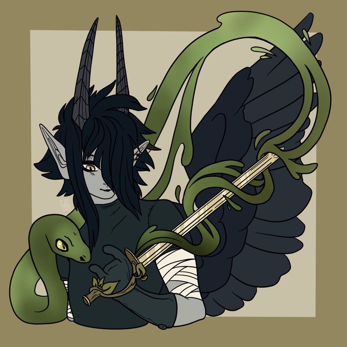 Drew Vino, @FatBotDraws ‘s character for a swordtember prompt! The prompt was poisonous!🐍 #art #myart #prompt #oc #swordtember2020 #Swordtember #Sketchtember #poisonous #snake #plants #character