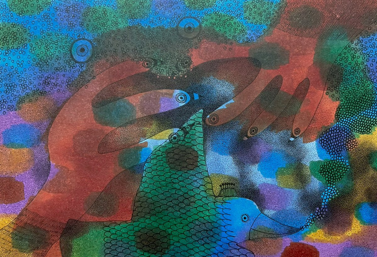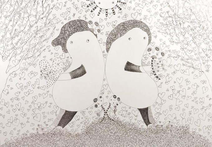 2018年1月11日に描いた絵🖼 絵の具って苦手💦 筆跡が残るのとか、かすれるのとか、滲むのとか、すごく気になる。 苦手であまり描かないから、筆使いが下手なんだろうなぁ。 これも描いた時はゲッと思ったし、いま見ても筆使いは下手だけど、幸せそうで好きかも☺️❣️ #artontwitter #painting #水彩画