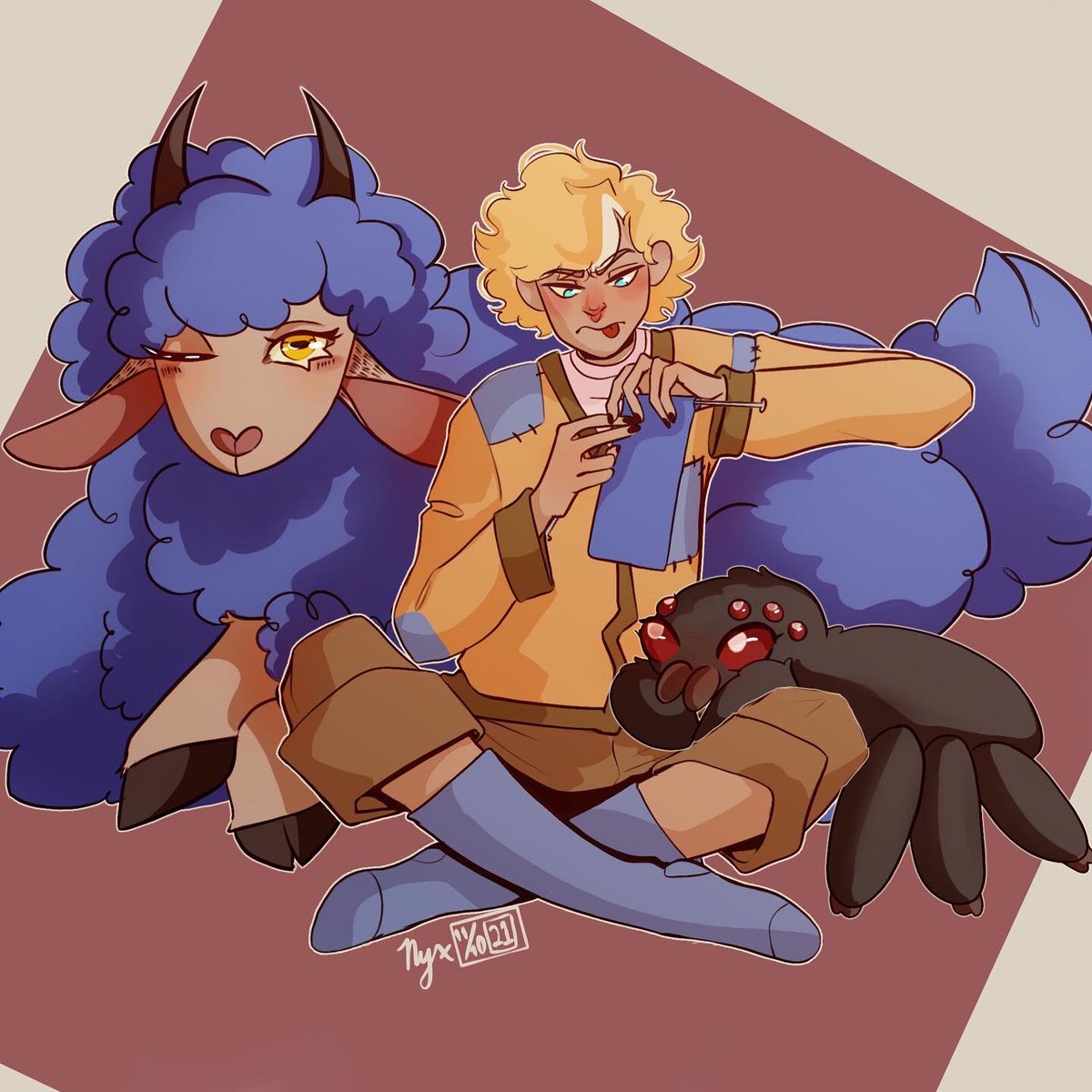 tommy using friend’s wool to fix his sweater.. :’) #dsmp #tommyinnitfanart #friendthesheep #shroudfanart