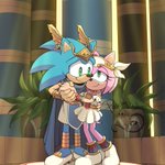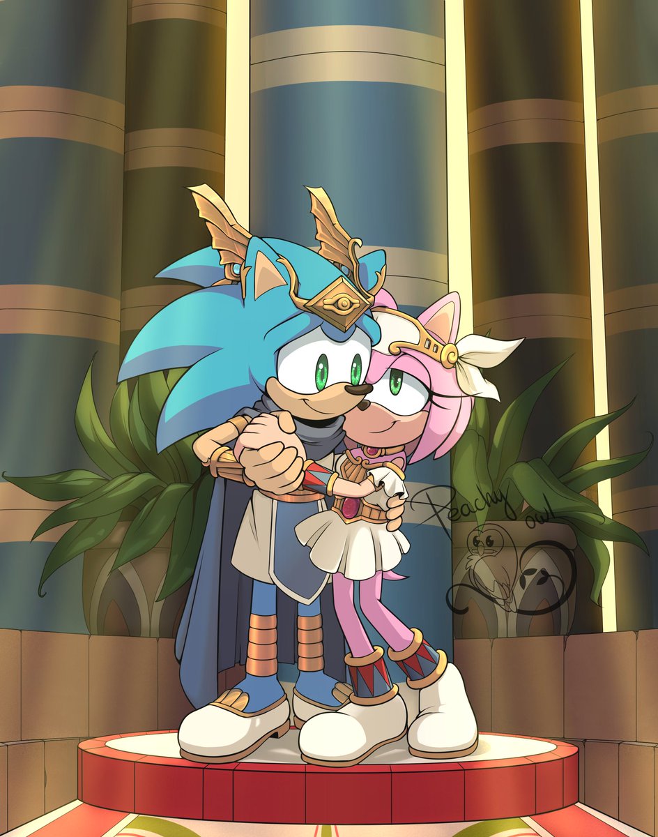 As promised - super cool #SonAmy art comm for @AndrewMS94 with Sonic as Atem & Amy as Mana, inspired by the anime #YuGiOh with a background is inspired by Pyramid Cave from SA2 Very proud of this one, so feel free to spread this one around! ❤️🦉 #SonicTheHedgehog #SonicFanart