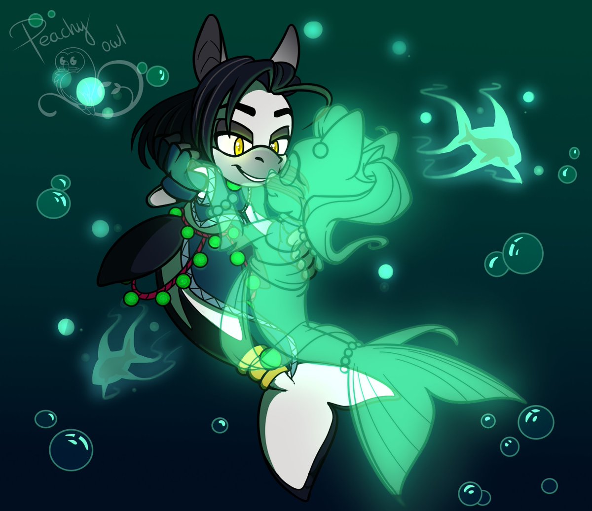 This is a pretty cool gift for @ElleriAn_ This OC's power is that he's a orca-necromancer, fulfilling the wishes of the souls he meets on his adventures. And looks like this one wanted a dance, how nice of him. #mermay #mermay2022
